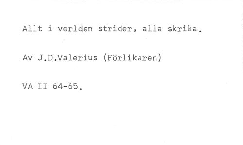 Allt i verlden strider, alla skrika. Av J.D.Valerius (Förlikaren) VA II 64-65.