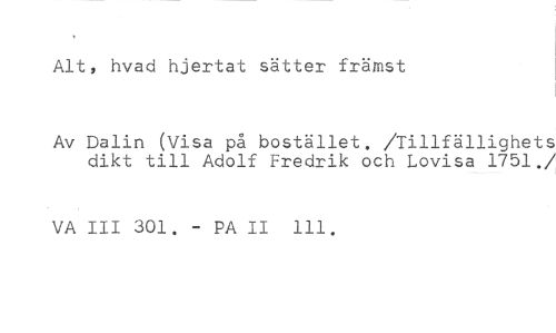 Alt, hvad hjertat sätter främst //// Av Dalin (Visa på bostället, /Tillfällighets dikt till Adolf Fredrik och Lovisa 1751. / ////VA III 301. - PA II 111.