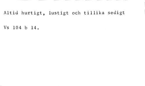 Altid hurtigt, lustigt och tillika sedigt //// Vs 104 b 14.
