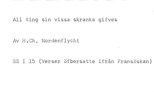 All ting sin vissa skranka gifves //// Av H.Ch. Nordenflycht //// SS I 15 (Verser öfbersatte ifrån Fransöskan)