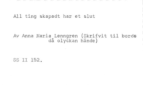 All ting skapadt har et slut //// Av Anna Maria Lenngren (Skrifvit til bord6 då olyckan hände) //// SS II 152,