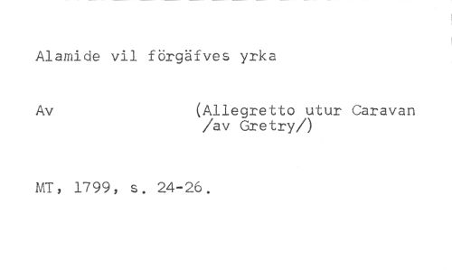Alamide vil förgäfves yrka //// Av (Allegretto utur Caravan //// /av Gretry/) //// MT, 1799, s. 24-26.