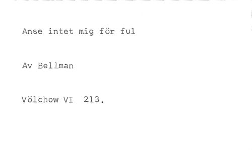 Anse intet mig för ful //// Av Bellman //// Völchow VI 213.