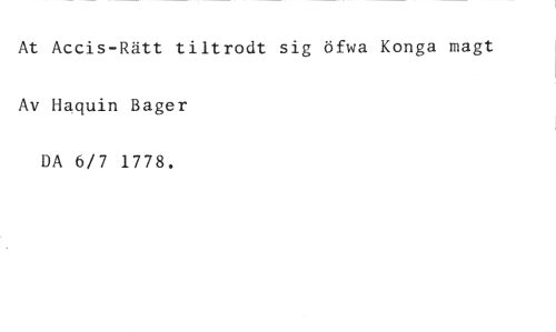 At Accis-Rätt tiltrodt sig öfwa Konga magt Av Haquin Bager //// DA 6/7 1778.
