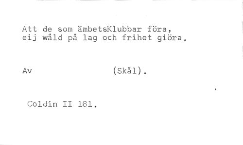 Att de som ämbetsKlubbar föra, eij wåld på lag och frihet giöra. //// Av (Skål). //// Coldin II 181.