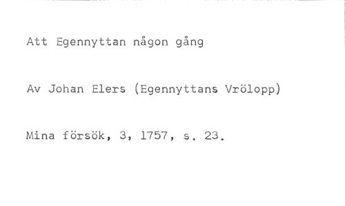 Att Egennyttan någon gång //// Av Johan Elers (Egennyttans Vrölopp) //// Mina försök, 3, 1757, s. 23.