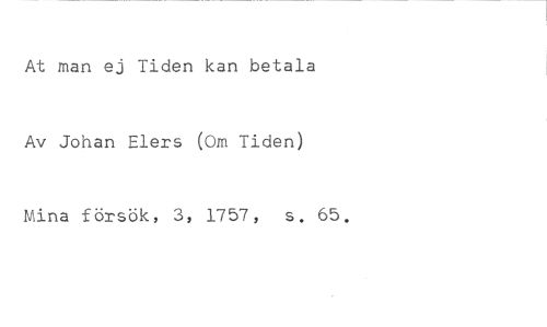 At man ej Tiden kan betala //// Av Johan Elers (Om Tiden) //// Mina försök, 3, 1757, s. 65.
