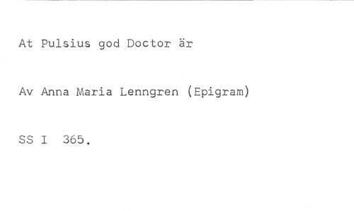 At Pulsius god Doctor är //// Av Anna Maria Lenngren (Epigram) //// SS I 365.