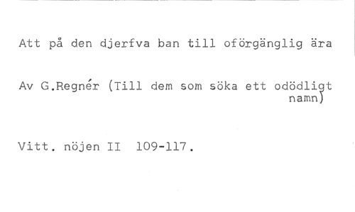 Att på den djerfva ban till oförgänglig ära //// Av G.Regner (Till dem som söka ett odödligt //// namn) //// Vitt. nöjen II 109-117.