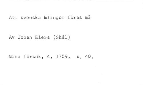 Att svenska kilingor föras må //// Av Johan Elers (Skål) //// Mina försök, 4, 1759, s. 40.