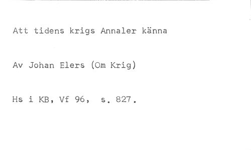 Att tidens krigs Annaler känna //// Av Johan Elers (Om Krig) //// Hs i KB, Vf 96, s. 827.