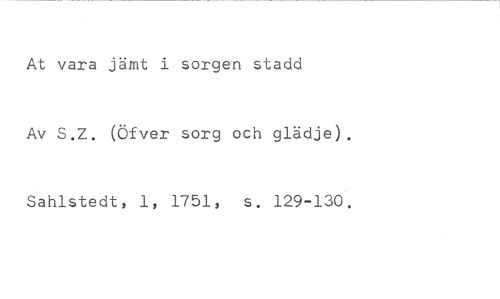 At vara jämt i sorgen stadd //// Av S.Z. (Öfeer sorg och glädje). //// Sahlstedt, 1, 1751, s. 129-130.