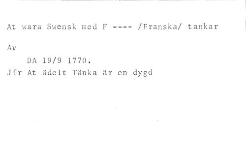 At wara Swensk med F /Franska/ tankar //// Av //// DA 19/9 1770. //// Jfr At ädelt Tänka är en dygd