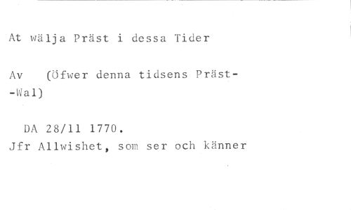 At wälja Präst i dessa Tider //// Av (Öfwer denna tidsens Präst- //// -Wal) //// DA 28/11 1770. //// Jfr Aliwishet, som ser och känner