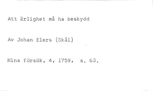 Att ärlighet må ha beskydd //// Av Johan Elers (Skål) //// Mina försök, 4, 1759, s. 63.