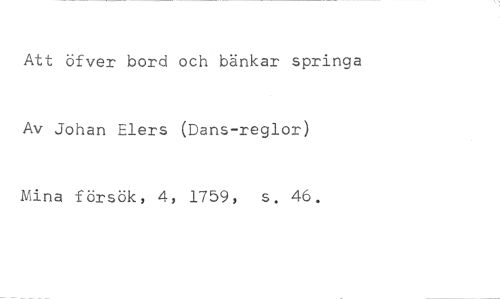 Att öfeer bord och bänkar springa //// Av Johan Elers (Dans-reglor) //// Mina försök, 4, 1759, s. 46.