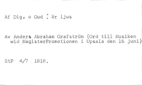 Af Dig, o Gud : är ljus //// Av Anders Abraham Grafström (Ord till Musiken wid MagisterPromotionen i Upsala den 16 juni //// StP 4/7 1818.