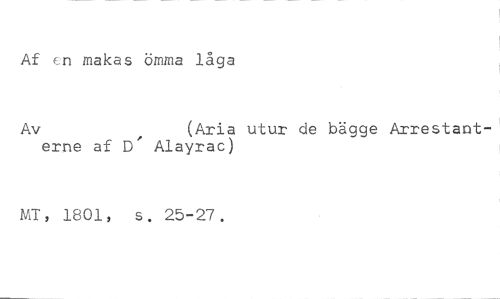Af en makas ömma låga //// Av (Aria utur de bägge Arrestant- //// erne af D' Alayrac) //// MT, 1801, s. 25-27.