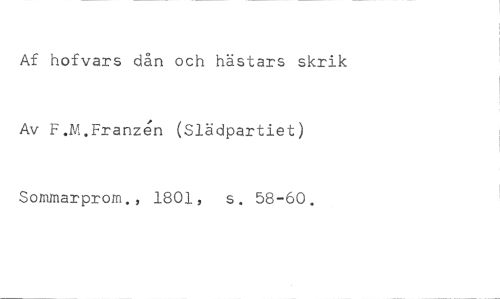 Af hofvars dån och hästars skrik //// Av F.M.Franzgn (Slädpartiet) //// Sommarprom., 1801, s. 58-60.