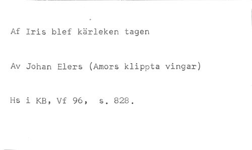 Af Iris blef kärleken tagen //// Av Johan Elers (Aurors klippta vingar) //// Hs i KB, Vf 96, s. 828.