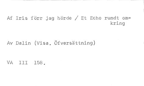 Af Iris förr jag hörde / Et Echo rundt om- //// kring //// Av Dalin (Visa. Öfversättning) //// VA III 158.