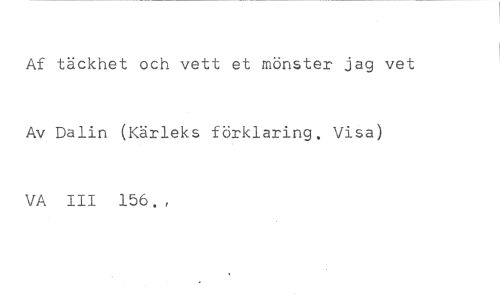Af täckhet och vett et mönster jag vet //// Av Dalin (Kärleks förklaring. Visa) //// VA III 156.,