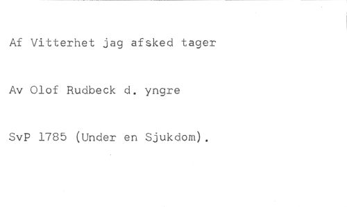 Af Vitterhet jag afsked tager //// Av Olof Rudbeck d. yngre //// SvP 1785 (Under en Sjukdom).