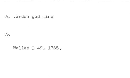 Af värden god mine //// Av //// Wallen I 49, 1765.