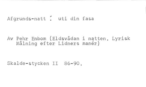 Afgrunds-natt : uti din fasa //// Av Pehr Enbom (Eldsvådan i natten. Lyrisk Målning efter Lidners maner) //// Skalde-stycken II 86-90.