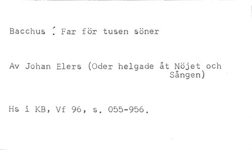 Bacchus : Far för tusen söner //// Av Johan Elers (Oder helgade åt Nöjet och //// Sången) //// Hs i KB, Vf 96, s. 055-956.