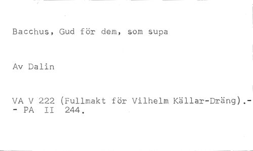 Bacchus, Gud för dem, som supa //// Av Dalin //// VA V 222 (Fullmakt för Vilhelm Källar-Dräng).- - PA II 244.
