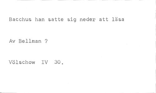 Bacchus han satte sig neder att läsa //// Av Bellman ? //// Völschow IV 30.