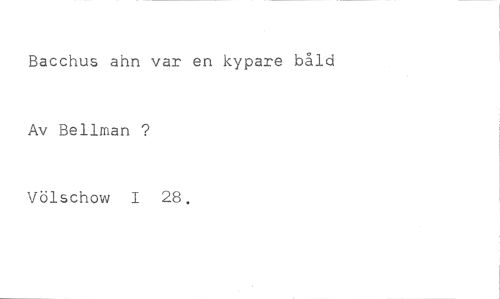 Bacchus ahn var en kypare båld //// Av Bellman ? //// Völschow I 28.