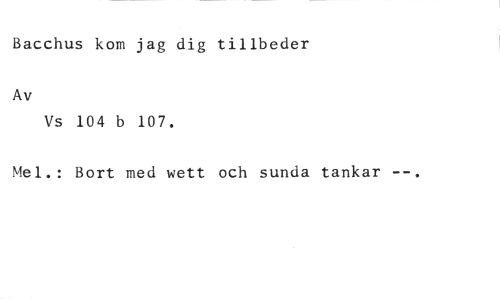 Bacchus kom jag dig tillbeder //// Av //// Vs 104 b 107. //// Mel.: Bort med wett och sunda tankar --.