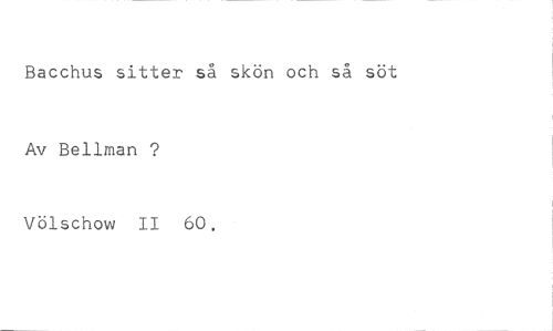 Bacchus sitter så skön och så söt //// Av Bellman ? //// Völschow II 60.