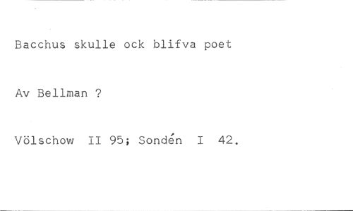 Bacchus skulle ock blifva poet //// Av Bellman ? //// Völschow II 95; Sonden I 42.