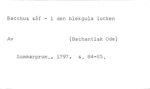 Bacchus såf - i den blekgula locken //// Av (Bachantisk Ode) //// Sommarprom., 1797, s. 84-85.