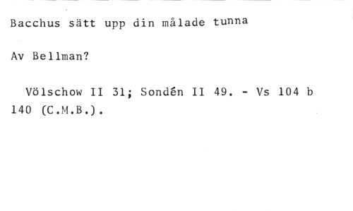 Bacchus sätt upp din målade tunna Av Bellman? //// Völschow II 31; Sonden II 49. - Vs 104 b 140 (C.M.B.).