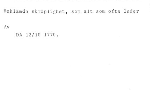 Beklämda skröplighet, som alt som ofta leder //// Av //// DA 12/10 1770.