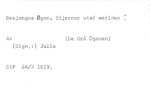 Besjungna egon, Stjernor utaf werlden //// Av (De Grå Ögonen) //// (Sign.:) Julia //// StP 24/3 1819.