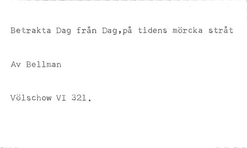 Betrakta Dag från Dag,på tidens mörcka stråt //// Av Bellman //// Völschow VI 321,