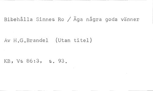 Bibehålla Sinnes Ro / Äga några goda vänner //// Av H.G.Brandel (Utan titel) //// KB, Vs 86:3, s. 93.