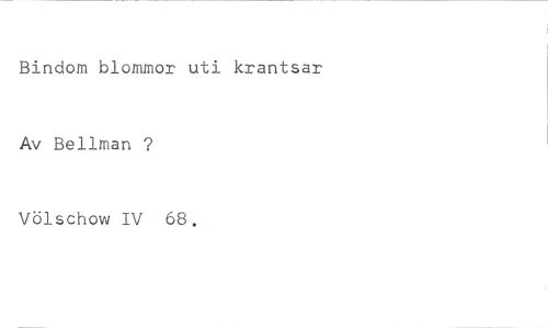 Bindom blommor uti krantsar //// Av Bellman ? //// Völschow IV 68.