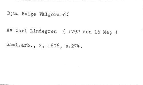 Bjud Evige Välgörare: //// Av Carl Lindegren ( 1792 den 16 Maj ) Saml.arb., 2, 1806, s.274.