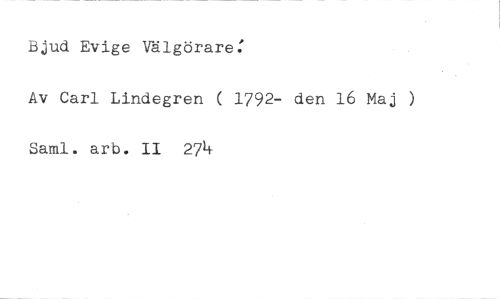 Bjud Evige Välgörare: //// Av Carl Lindegren ( 1792- den 16 Maj ) Saml. arb. II 274