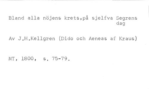 Bland alla nöjens krets,på sjelfva Segrens //// dag //// Av J.H.Kellgren (Dido och Aeneas af Kraus) //// MT, 1800, s. 75-79.