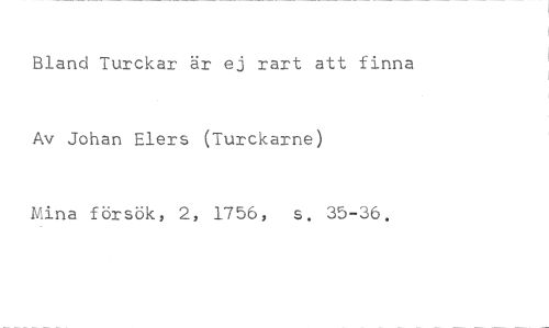 Bland Turckar är ej rart att finna //// Av Johan Elers (Turckarne) //// Mina försök, 2, 1756, s. 35-36.