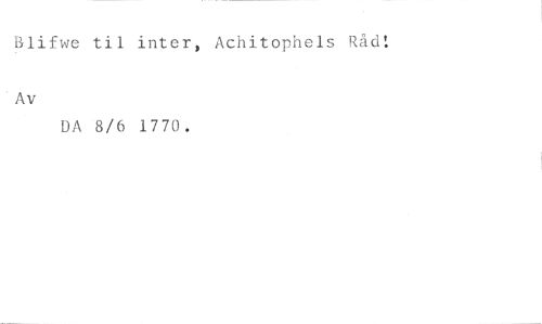 Blifwe til inter, Achitophels Råd: //// DA 8/6 1770.