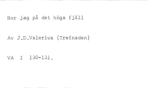 Bor jag på det höga fjäll //// Av J.D.Valerius (Trefnaden) //// VA I 130-131.