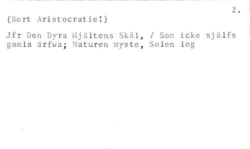 2. //// (Bort Aristocratie!) //// Jfr Den Dyra Hjältens Skål, / Som icke själfs gamla ärfwa; Naturen myste, Solen log